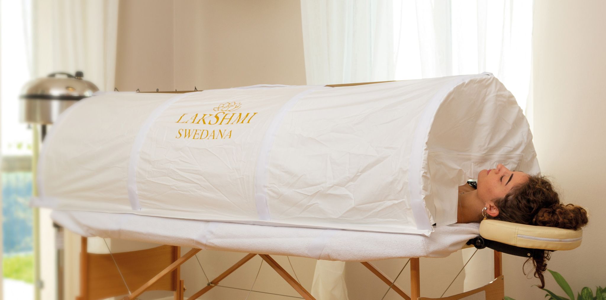 A Swedhana é uma terapia ayurvédica tradicional, semelhante a uma sauna individual, que promove uma desintoxicação profunda, relaxamento muscular e equilíbrio dos doshas. Durante a sessão, o corpo é envolvido pelo calor, que abre os poros, estimula a circulação e ajuda a eliminar toxinas acumuladas (ama), proporcionando uma sensação imediata de leveza e bem-estar.